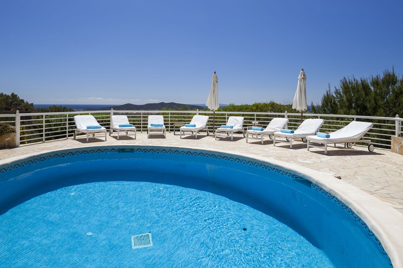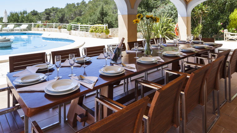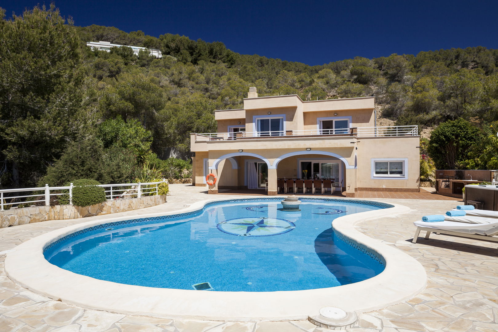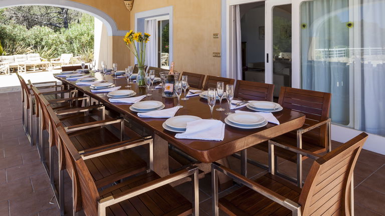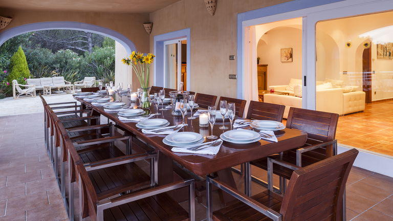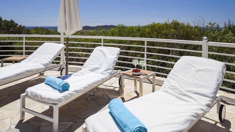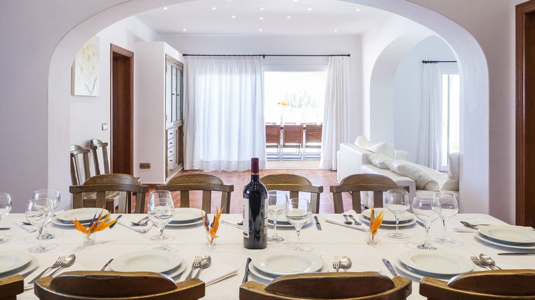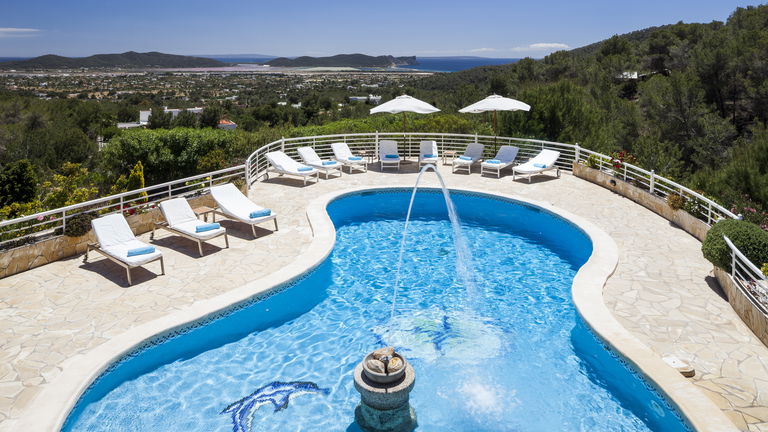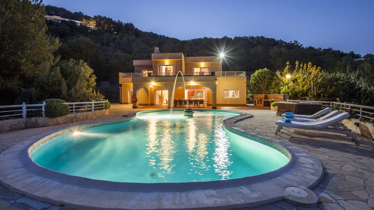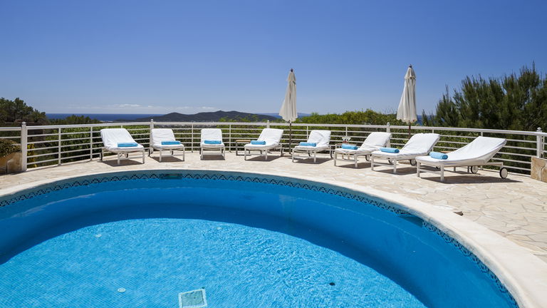 Elegante villa de estilo mediterráneo ubicada en lo alto de una colina, en el exclusivo km4 al sur de Ibiza. Ubicación privilegiada: vistas panorámicas a Las Salinas y Formentera, a solo 10 minutos de Ibiza ciudad, Playa d'en Bossa y el aeropuerto. Características: 6 habitaciones dobles con baño en suite, Piscina privada de agua salada con vistas al mar, Zona chill-out, tumbonas, barbacoa y porche con comedor al aire libre.Para los más activos, la villa ofrece esterillas de yoga, pesas, mancuernas, billar, mesa de ping-pong y una selección de juegos de mesa, ideales para mantener cuerpo y mente en perfecta armonía. Servicio de limpieza incluido: 1 limpieza para estancias superiores a 5 noches con cambio de toallas; para más de 10 noches, limpieza adicional cambio de sábanas. Horario de limpieza: 10:30 a 13:00 h, excepto domingos. Espacios amplios y luminosos, ideales para familias, grupos de amigos o retiros corporativos que buscan confort, privacidad y un entorno natural impresionante.