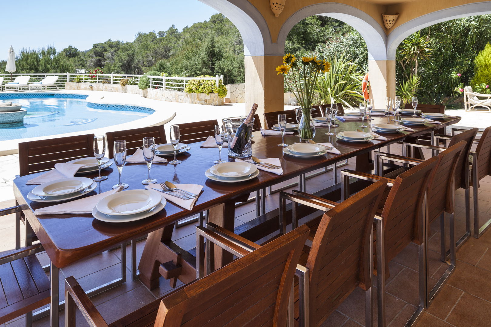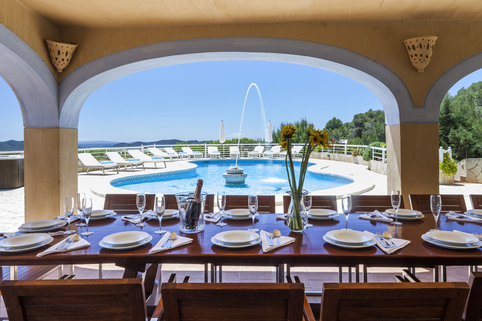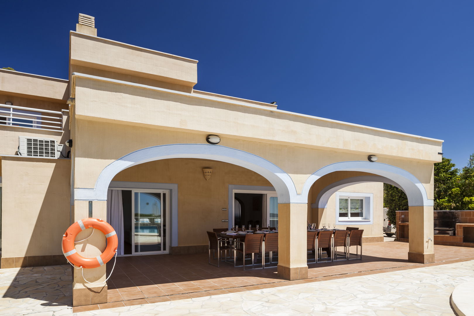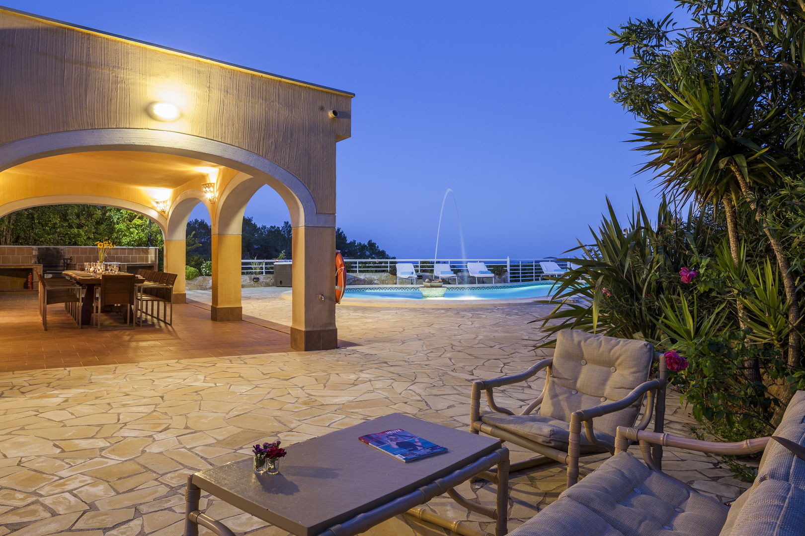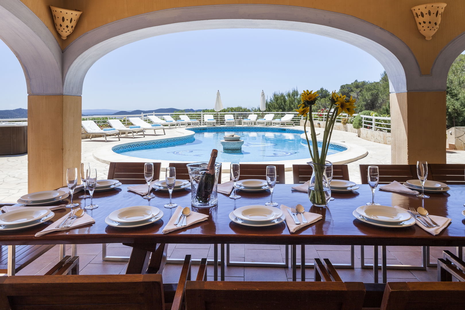 Elegante villa de estilo mediterráneo ubicada en lo alto de una colina, en el exclusivo km4 al sur de Ibiza. Ubicación privilegiada: vistas panorámicas a Las Salinas y Formentera, a solo 10 minutos de Ibiza ciudad, Playa d'en Bossa y el aeropuerto. Características: 6 habitaciones dobles con baño en suite, Piscina privada de agua salada con vistas al mar, Zona chill-out, tumbonas, barbacoa y porche con comedor al aire libre.Para los más activos, la villa ofrece esterillas de yoga, pesas, mancuernas, billar, mesa de ping-pong y una selección de juegos de mesa, ideales para mantener cuerpo y mente en perfecta armonía. Servicio de limpieza incluido: 1 limpieza para estancias superiores a 5 noches con cambio de toallas; para más de 10 noches, limpieza adicional cambio de sábanas. Horario de limpieza: 10:30 a 13:00 h, excepto domingos. Espacios amplios y luminosos, ideales para familias, grupos de amigos o retiros corporativos que buscan confort, privacidad y un entorno natural impresionante.